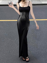 CUTENOVA Elegant Spaghetti Straps Print Long Dress Solid Color Sleeveless Square Neck Wrap Party Dress Summer Backless Cami €110.00