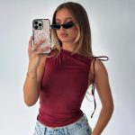 Home Bandage Lace Up Sleeveless Sexy Party Club Crop Top Outfits Women Spring Summer Y2K Streetwear Skew Collar Skinny Tank Tops Gift