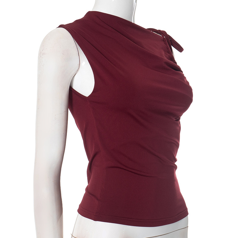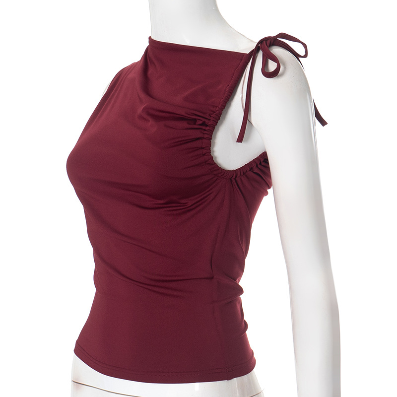 Bandage Lace Up Sleeveless Sexy Party Club Crop Top Outfits Women Spring Summer Y2K Streetwear Skew Collar Skinny Tank Tops Gift