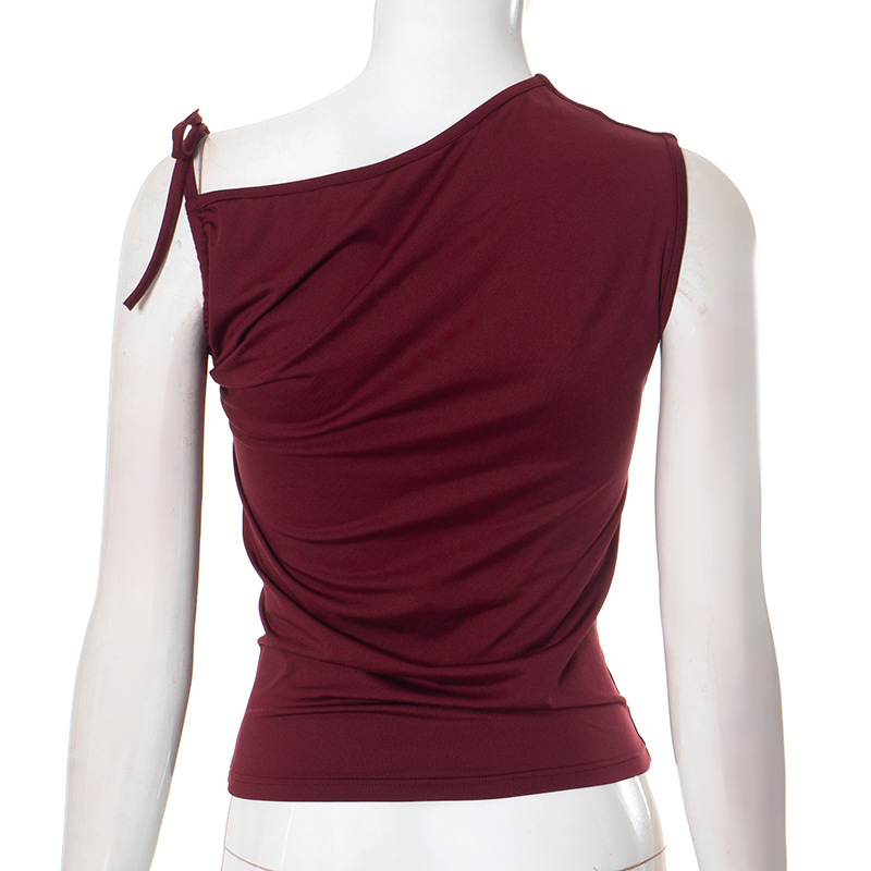 Women's Casual One shoulder Solid Color T-shirt Elegant Sexy Y2K Skew Collar Pullover Basic Vest Ins Style Clubwear 2025 €80.00