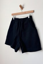 Medium: Waist 13” relaxed, Hip 23″, Inseam 5”, Leg opening 13 1/4″, Rise 11 1/4″