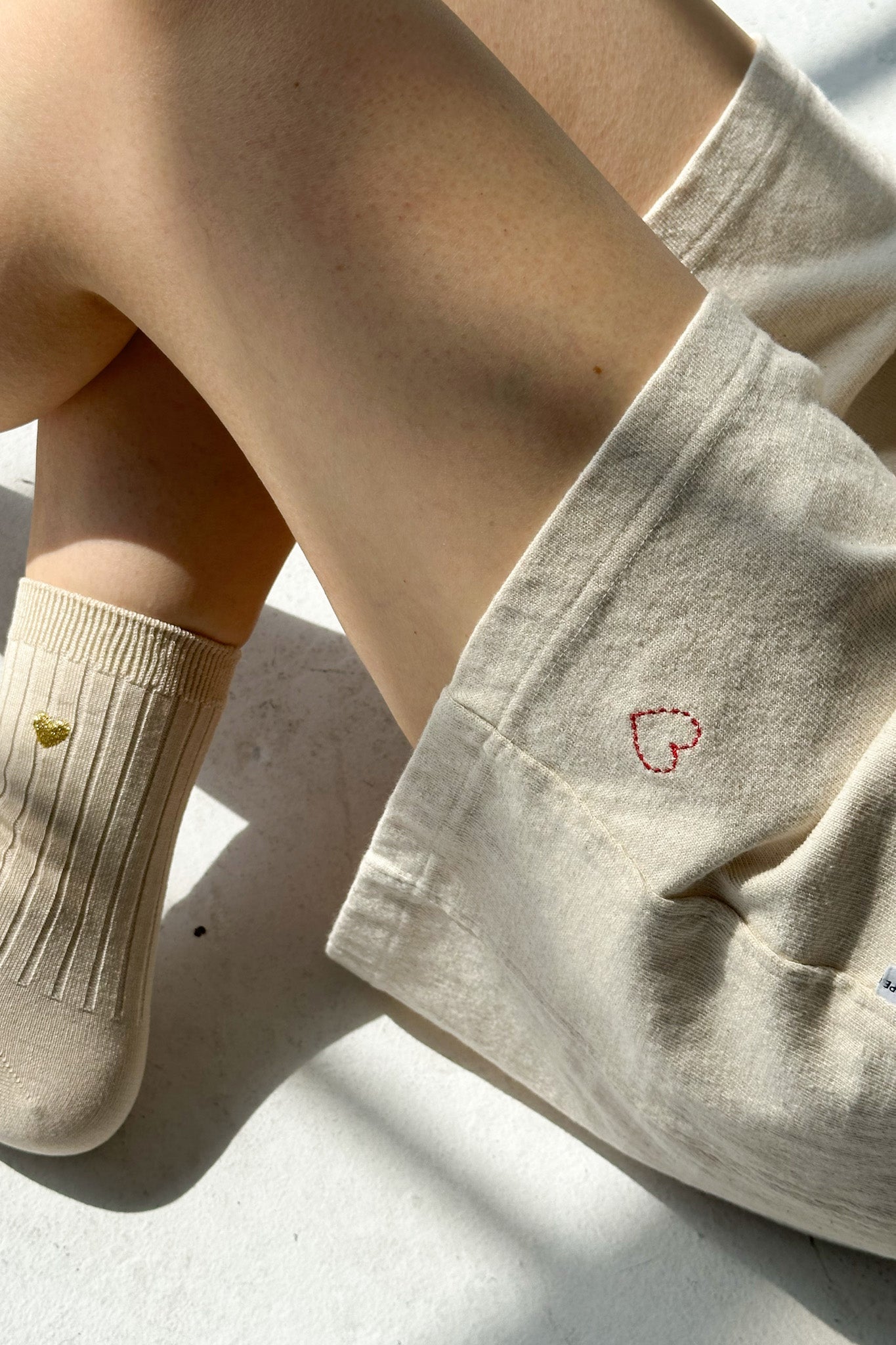 Embroidered Flared Basketball Shorts – Naturel + Heart