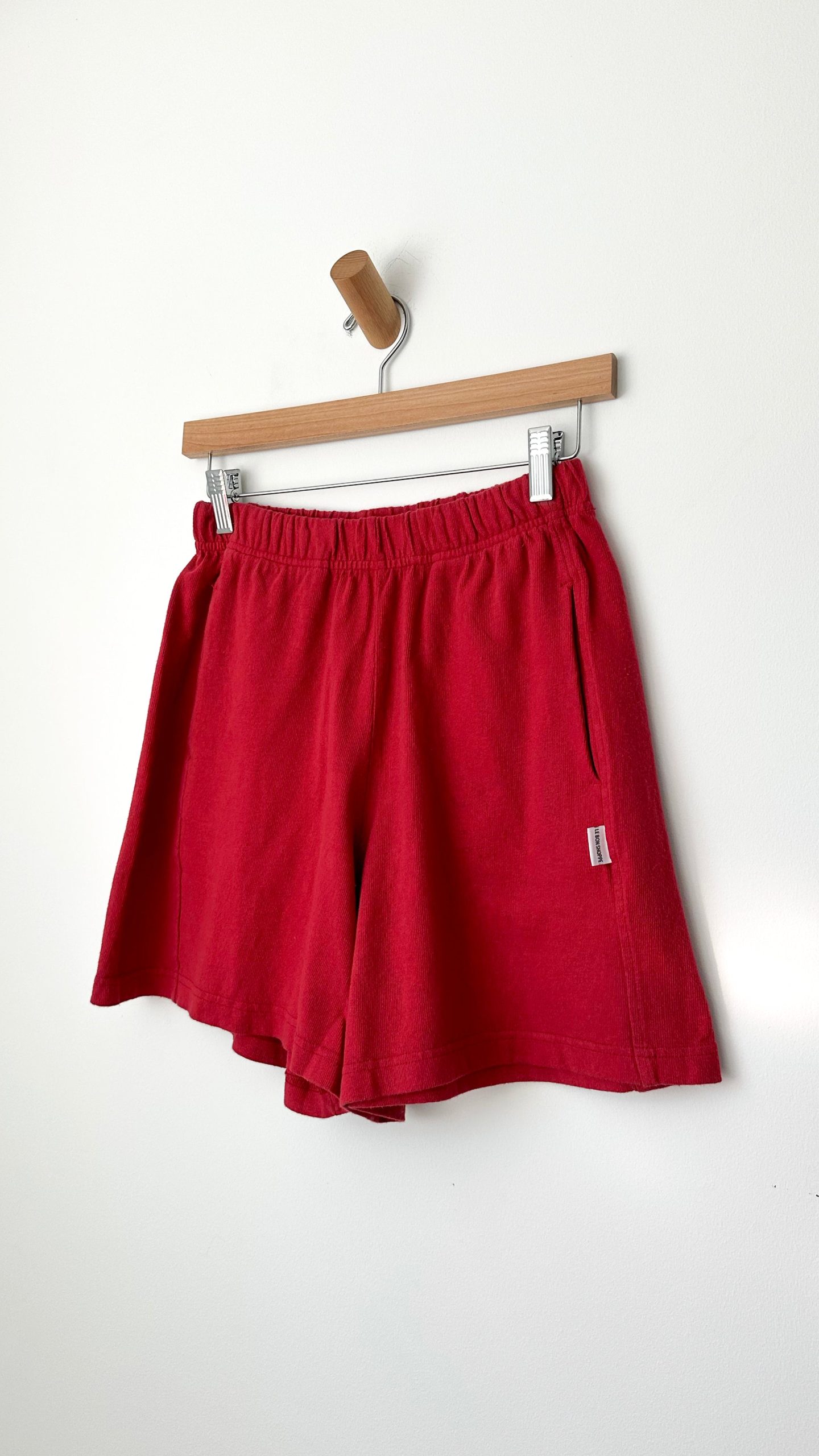 Large: Waist 14” relaxed, Hip 24″, Inseam 5”, Leg Opening 13 1/2″, Rise 11 1/2″