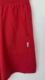 Medium: Waist 13” relaxed, Hip 23″, Inseam 5”, Leg opening 13 1/4″, Rise 11 1/4″
