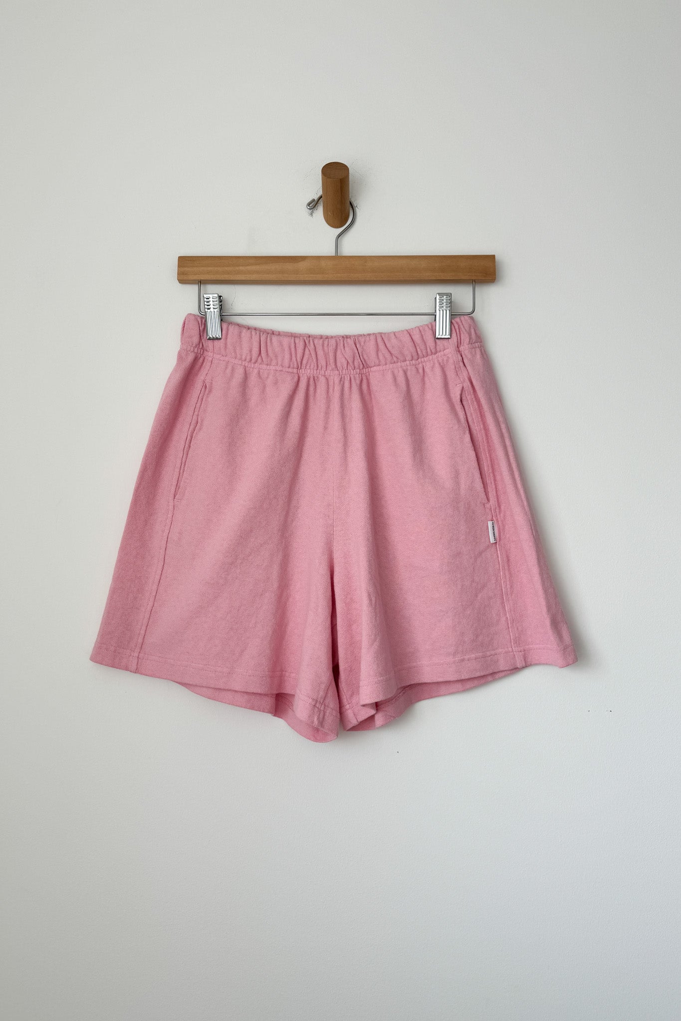 Medium: Waist 13” relaxed, Hip 23″, Inseam 5”, Leg opening 13 1/4″, Rise 11 1/4″