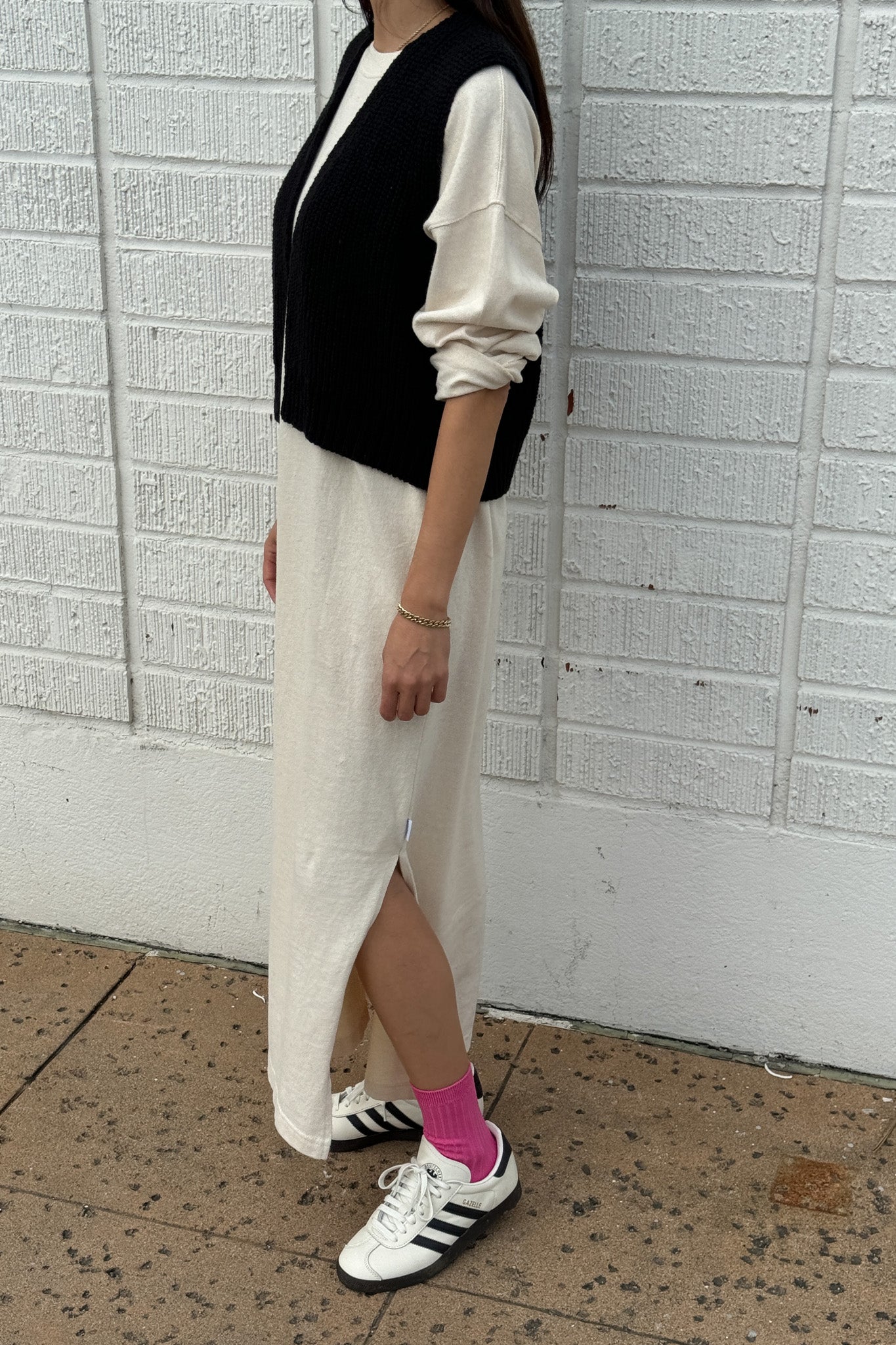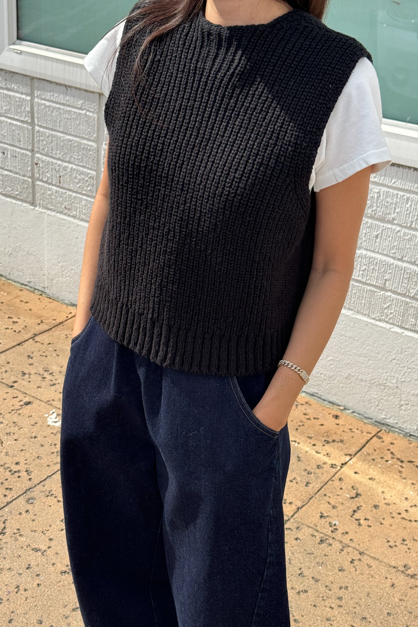 The Granny Sweater Vest is the ideal layering piece to complement your collection of closet essentials. With its slightly cropped, boxy fit, it effortlessly adds versatility to any outfit. Style it open-front for a classic look or turn it around, clip it at the back, and wear it as a true vest. The possibilities are endless.