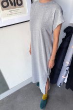 The Jeanne Dress is a perfect blend of our bestselling Her Dress and Jeanne Tee. Slightly oversized with extended shoulders, it channels the classic muscle tee vibe. Featuring a playful high slit, this dress combines effortless style and comfort, making it your go-to piece all season. Versatile and easy to style, it’s the ultimate travel essential.