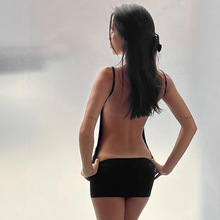 Shestyle Backless Black Basic Mini Dress Women Spaghetti Strap Night Club Lingerie Extremely Hot Solid Sheath Sexy Outfits