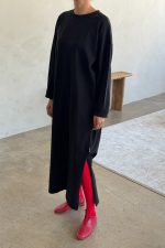The Sunday Dress pays tribute to our bestselling Sunday Tee and Her Dress, offering the perfect blend of comfort and style. With a menswear-inspired fit and a subtle, playful high side slit, this ankle-length dress effortlessly combines masculine details with feminine flair. The sleeves are wide enough to roll up, making it an easy addition to your wardrobe staples.