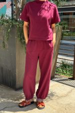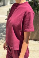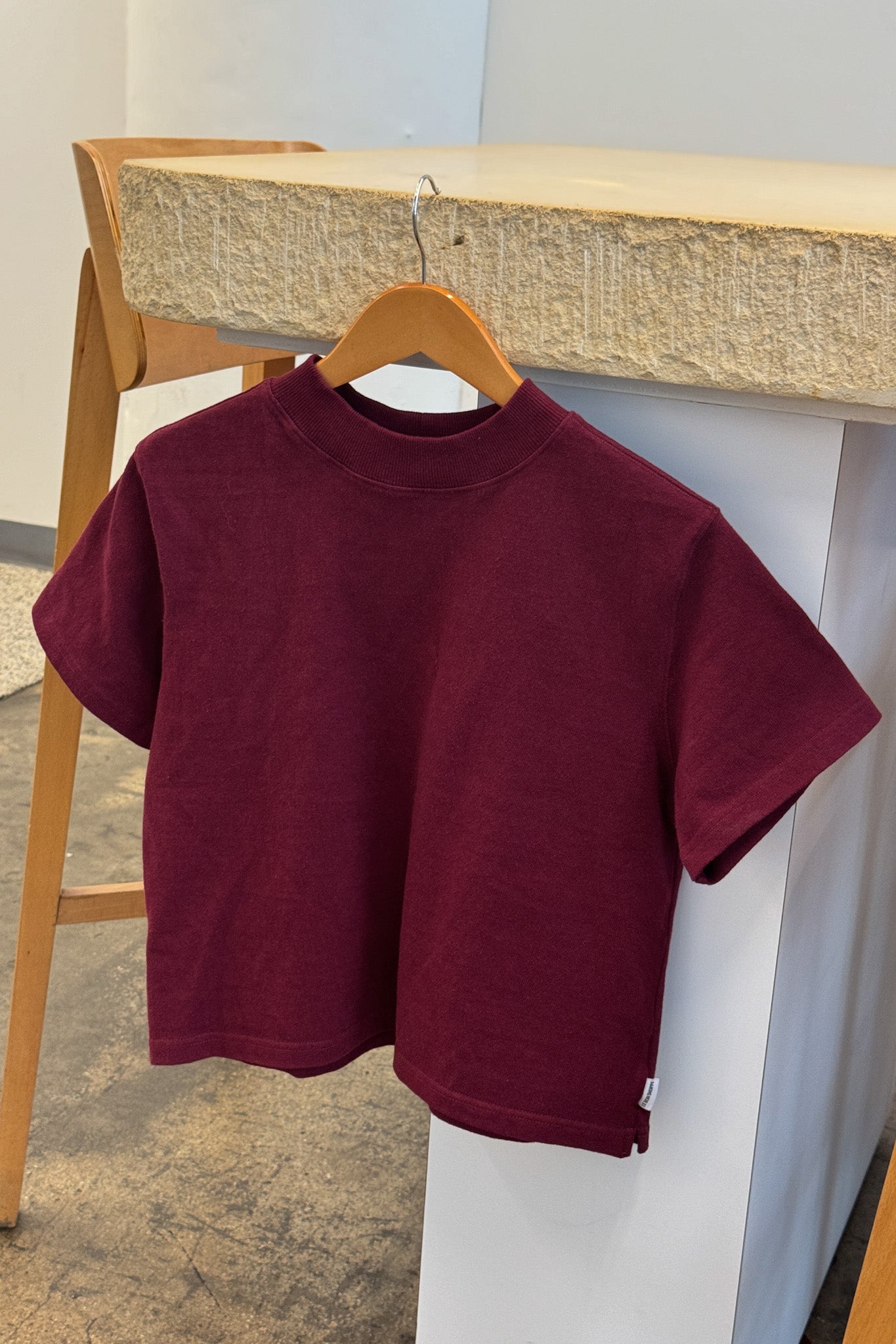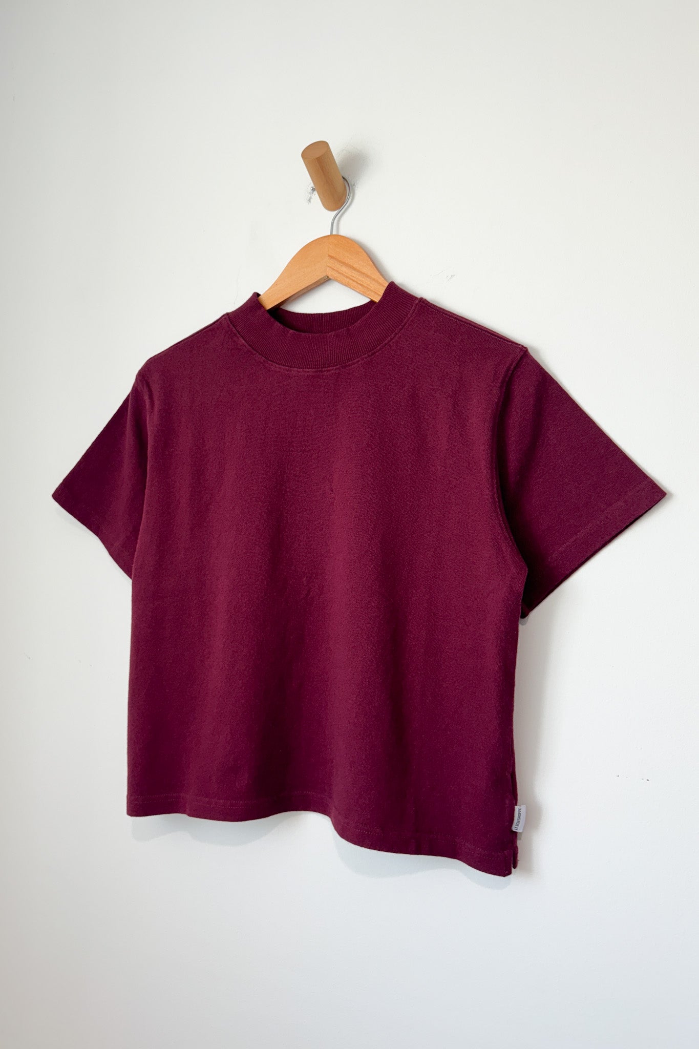 Home Tops Sunset Mock Neck Tee – Cabernet
