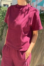 A fresh take on the mock neck tee — The Sunset Tee draws inspiration from the Jeanne Tee, offering a similar boxy fit with an ideal waist length. This tee is elevated by its mock neck and classic length sleeves, combining masculine details with a feminine silhouette for a versatile piece that’s effortlessly stylish and perfect for year-round wear.