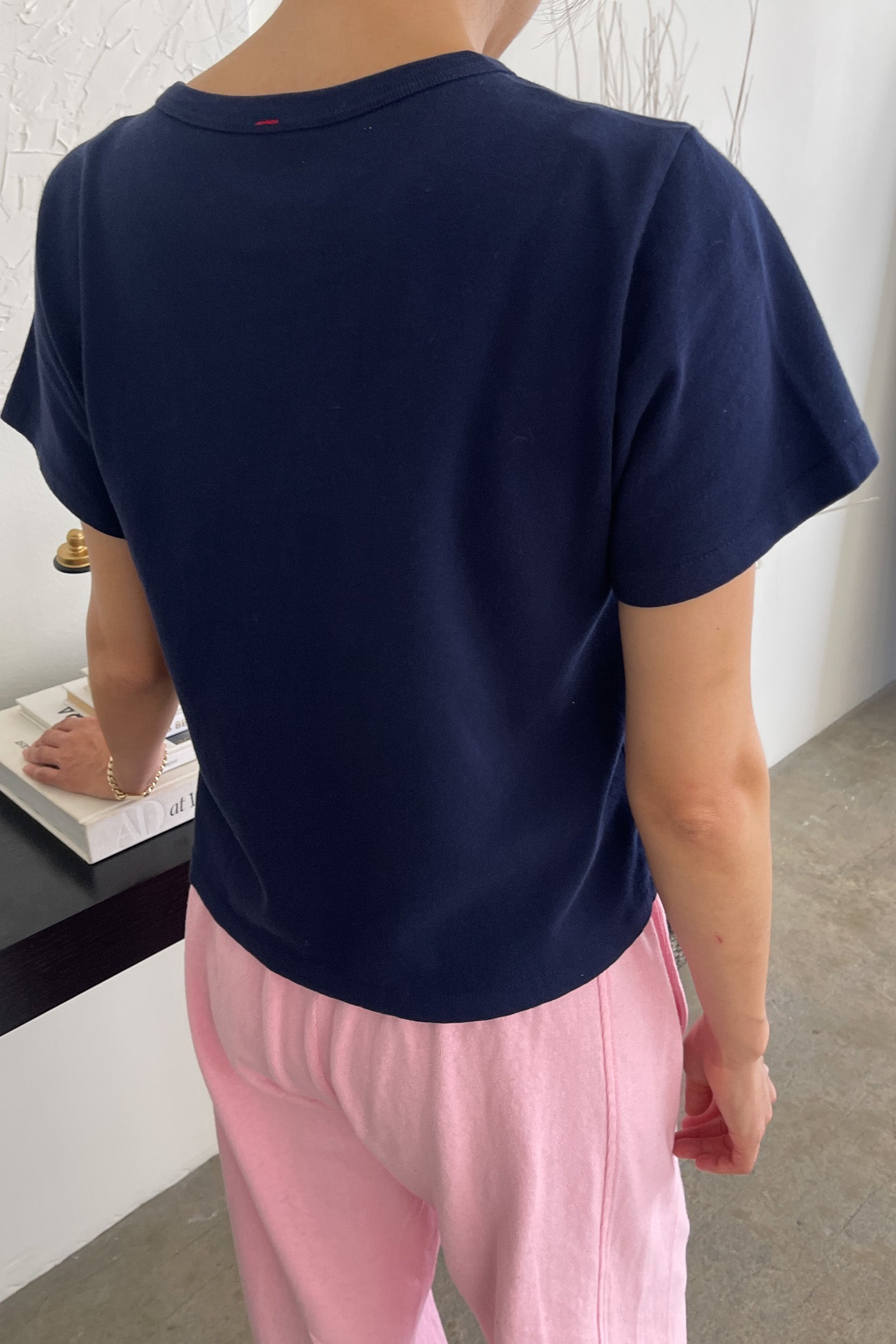 The quest for the perfect tee ends here. The first of its kind, The Little Boy Tee uses medium-weight 100% cotton premium jersey blend for a flattering slim fit with just the right amount of stretch. It features baby ribbed details and maintains a suitable cropped length. Consider this little tee the perfect piece to remain a cherished part of your wardrobe season after season. Garment washed and dyed, each tee shows off a beautiful natural worn-in look.