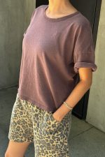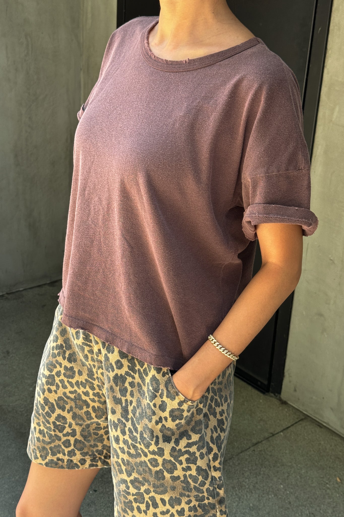 The perfect cropped but not too short tee to pair with all your high waisted bottoms is here to stay. Fille Tee is the exact length that you have been searching for in a shorter tee to wear untucked. With a light vintage distressed detail she will give you that oh so effortless look.