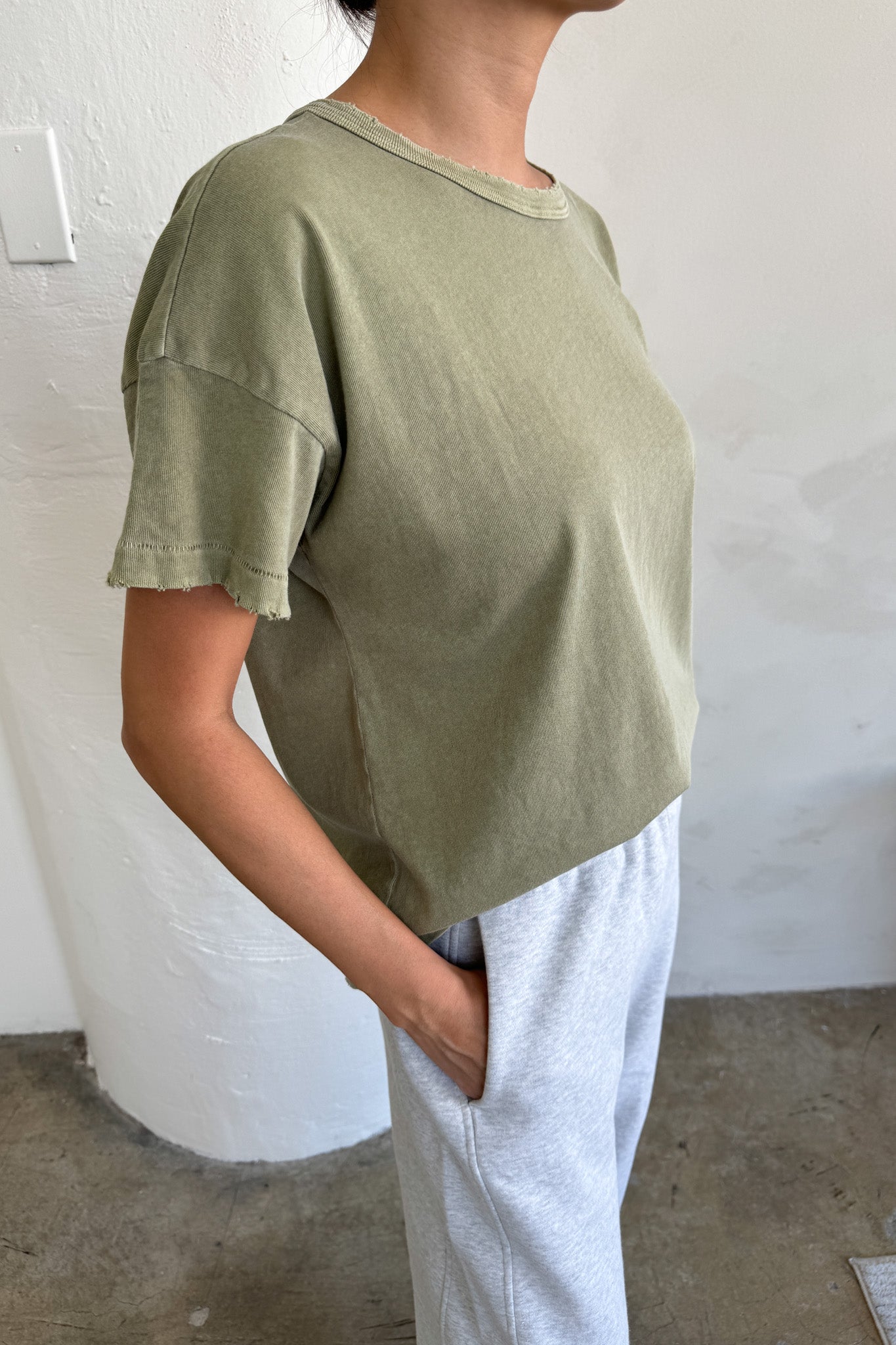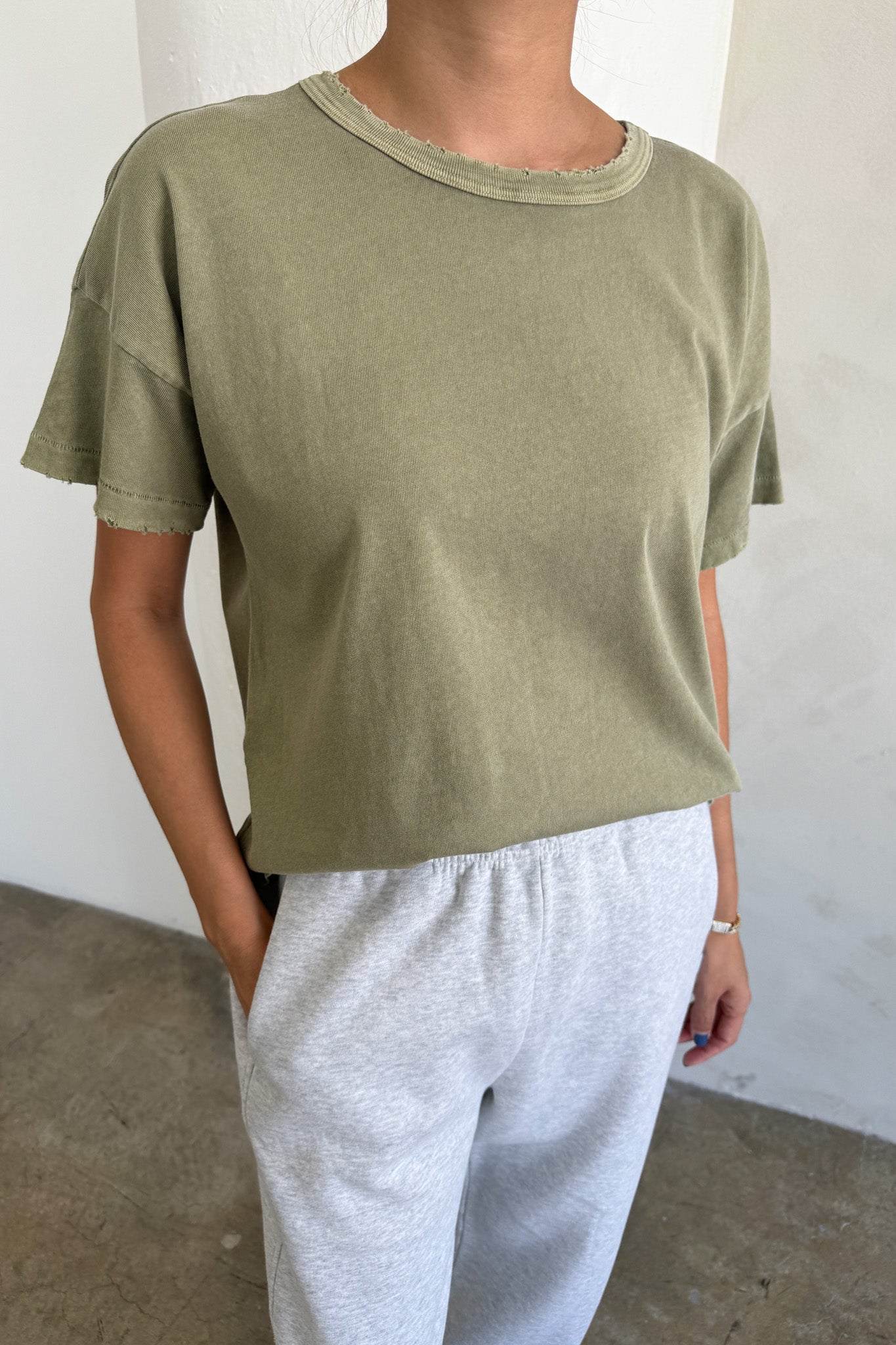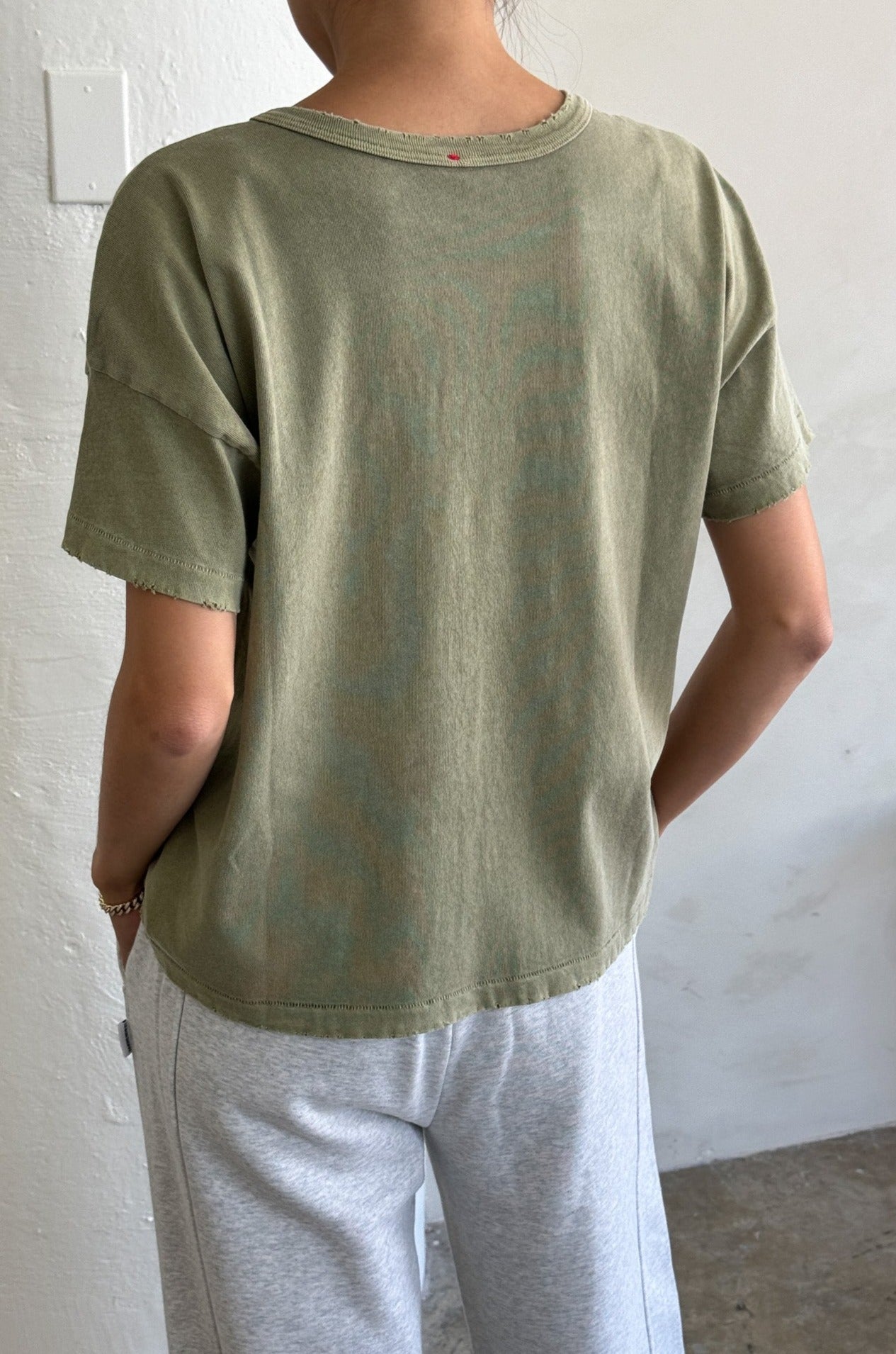 The perfect cropped but not too short tee to pair with all your high waisted bottoms is here to stay. Fille Tee is the exact length that you have been searching for in a shorter tee to wear untucked. With a light vintage distressed detail she will give you that oh so effortless look.