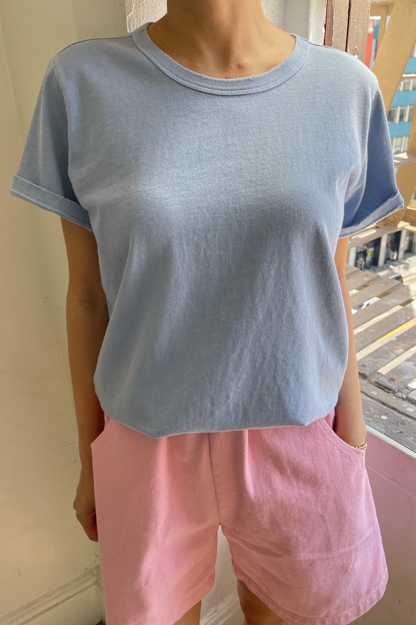 Organic Cotton Vintage Boy Tee is our take on the cult classic tee, almost like the one you love to steal from your boyfriend’s closet, but even better. She has a classic crew neck that shows just the right amount of collarbone, is gently distressed for that gorgeous vintage look but without the smell, and has the most flattering relaxed boxy fit with a straight hem. Made from 100% organic cotton in Los Angeles, this tee has it all.
